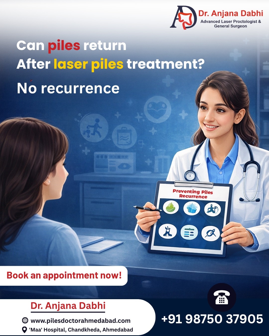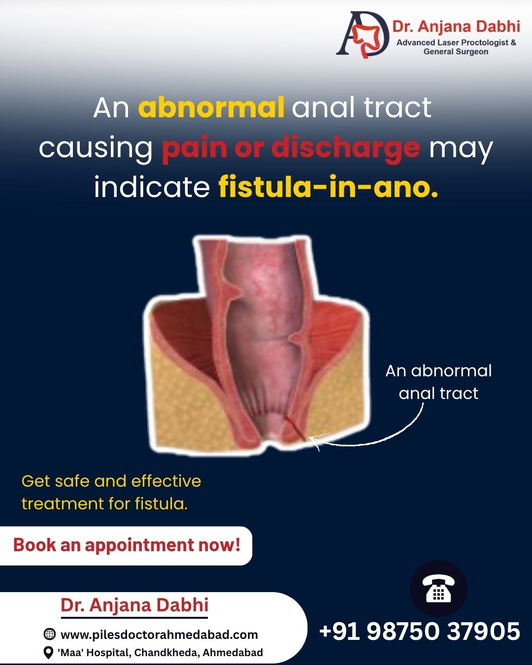 Don’t let anal fissures rule your life. If you’re looking for the best anal fissure treatment in Ahmedabad, turn to the skilled hands of Dr. Anjana Dabhi. Her advanced approach ensures fast, painless recovery—and more importantly, peace of mind.