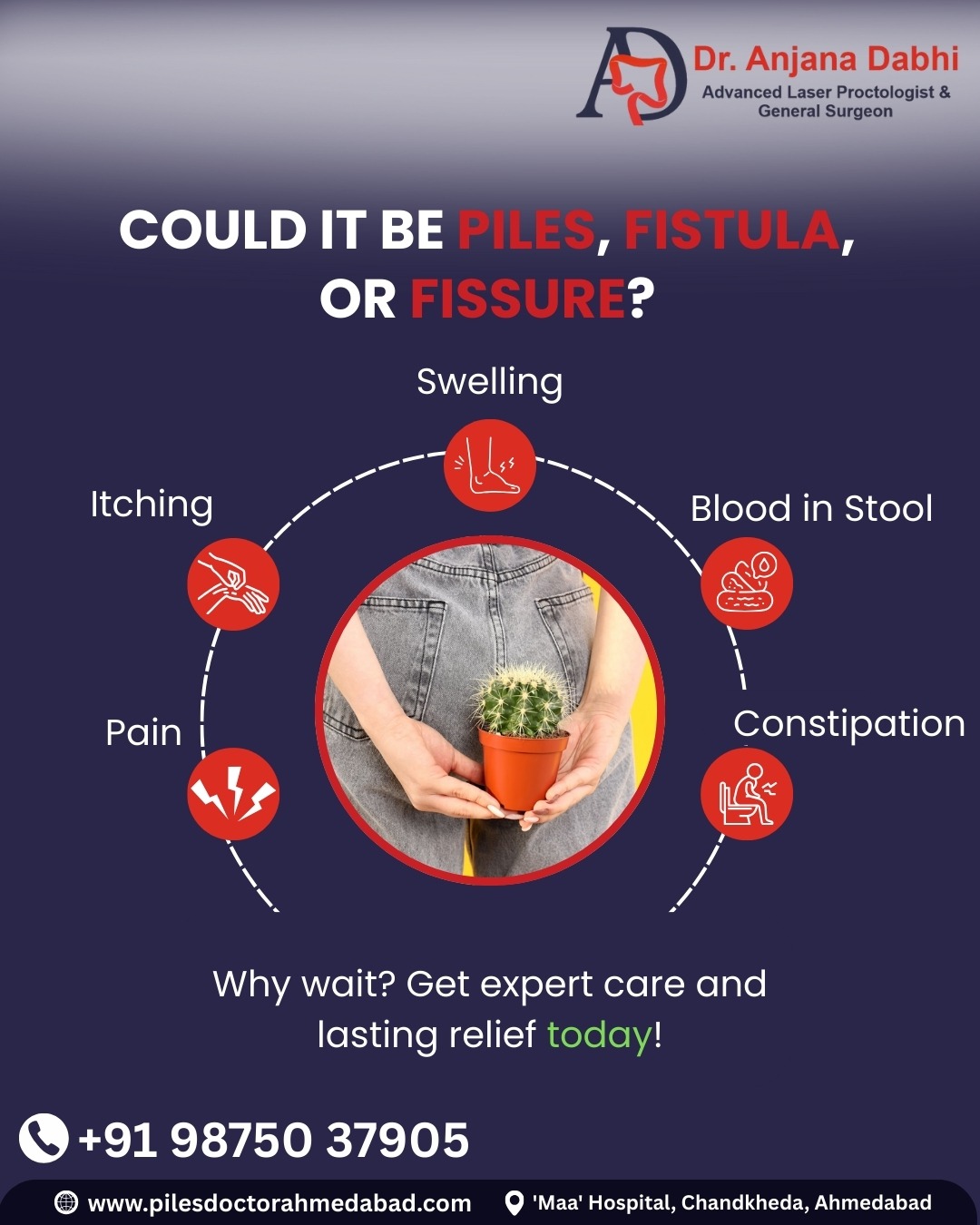 Best Piles Doctor in Ahmedabad. Living with piles, fissures, or fistulas can be painful and disruptive, affecting your daily routine and confidence. At Dr. Anjana Dabhi, a renowned laser proctologist and general surgeon, you get compassionate, expert care tailored to your condition—making her the Best Piles Doctor in Ahmedabad. Advanced Laser Procedures for Lasting Relief Dr. Dabhi specializes in minimally invasive laser treatments for piles, fissures, and fistulas. These procedures are quick, safe, and virtually painless—offering faster recovery, minimal bleeding, and lower chances of recurrence. Patients can often resume their daily activities within a few days, avoiding long hospital stays or painful dressings. Comprehensive Care from Diagnosis to Recovery From the very first consultation, Dr. Dabhi ensures thorough evaluation, clear guidance, and personalized treatment plans. She focuses on root-cause management—addressing diet, lifestyle, and bowel habits—so results are not just quick but lasting. Why Choose Dr. Anjana Dabhi • Highly experienced laser proctologist • Modern facilities at Maa Hospital, Chandkheda • Patient-centric approach and complete privacy • Proven success in treating complex cases Don’t let discomfort hold you back. Visit Dr. Anjana Dabhi, the Best Piles Doctor in Ahmedabad, and experience effective, compassionate care that brings lasting relief.