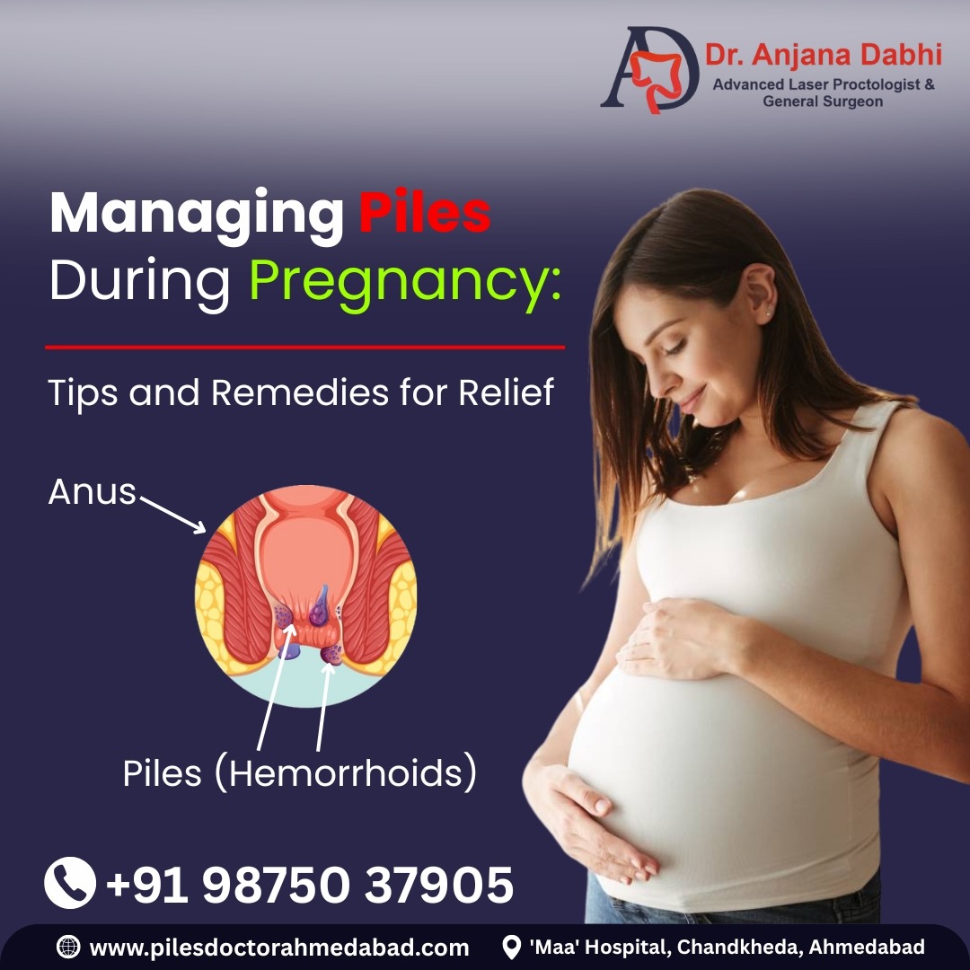 Best Women Doctor For Piles in Ahmedabad. Piles, or hemorrhoids, are a common concern during pregnancy and after childbirth. Increased pressure in the anus and rectum can lead to swelling, discomfort, and bleeding. Dr. Anjana Dabhi in Ahmedabad specializes in managing piles during and after pregnancy with safe and gentle care. Understanding Piles (Hemorrhoids) Piles occur when veins in the anus become swollen and inflamed. Pregnancy-related changes, constipation, and delivery stress can make this condition more likely. Timely treatment and proper self-care can help you feel better faster! Tips and Remedies for Relief: ✅ Eat fiber-rich foods like whole grains, fruits, and vegetables. ✅ Drink plenty of water to stay hydrated. ✅ Try warm sitz baths to soothe discomfort. ✅ Avoid sitting or standing too long. ✅ Gentle exercises can improve blood flow and reduce pressure. ✅ For persistent discomfort, seek guidance from the best piles lady doctor in Ahmedabad for expert treatment options. Dr. Anjana Dabhi is a leading laser proctologist and general surgeon in Ahmedabad, known for her expertise and compassionate care. She understands the unique challenges women face during pregnancy and postpartum and provides effective, tailored treatments for piles. Advanced Laser Treatment for Piles If you’re dealing with severe or persistent piles, Dr. Anjana Dabhi offers advanced laser treatments for quick, safe, and lasting relief. Laser treatment is minimally invasive, with less discomfort and a faster recovery time – an ideal option for women during and after pregnancy. 📞 Ready to find relief?